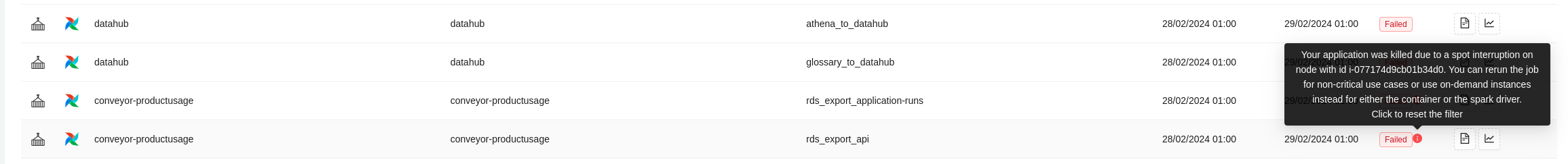 This means that your job was running on a spot instance and was interrupted by AWS because AWS reclaimed the instance in order to fulfil the request for another customer. This can happen for multiple components in Conveyor, such as: